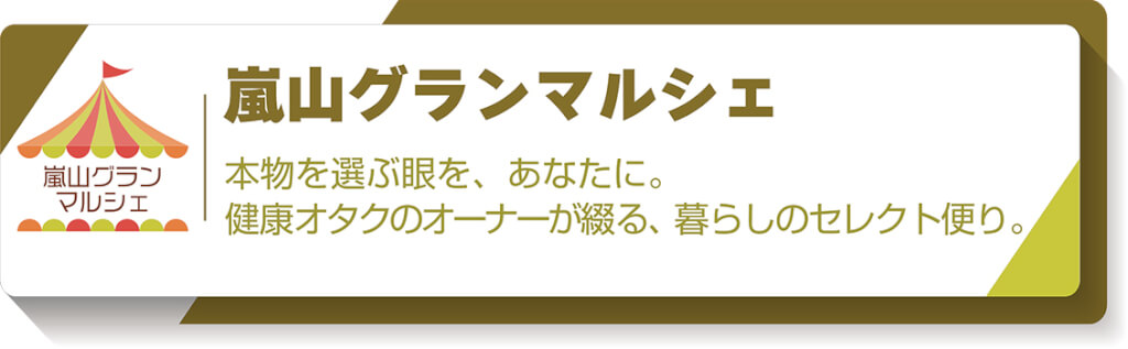 嵐山グランマルシェの店舗は2025年12月13日開催で6年余りの歴史に幕を閉じました。ありがとうございました。